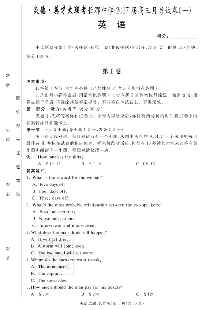 下一篇:【語文】炎德英才大聯考2017長郡中學高三1次月考