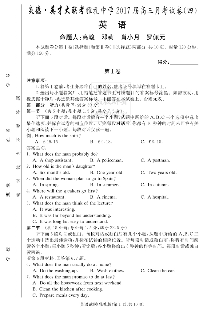 下一篇:【語文】炎德英才大聯考2017雅禮中學高三4次月考