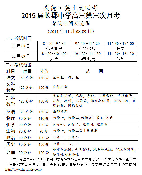 上一篇:炎德英才大聯考長郡中學2015屆高三第2次月考考試時間和范圍(2014.10.03-04)