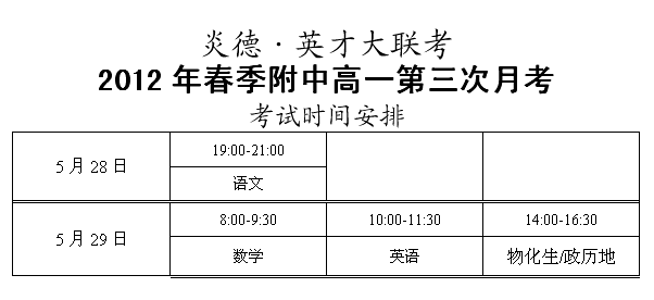 下一篇:2013年春季師大附中高一月考時(shí)間范圍訂單(2013.03-07)