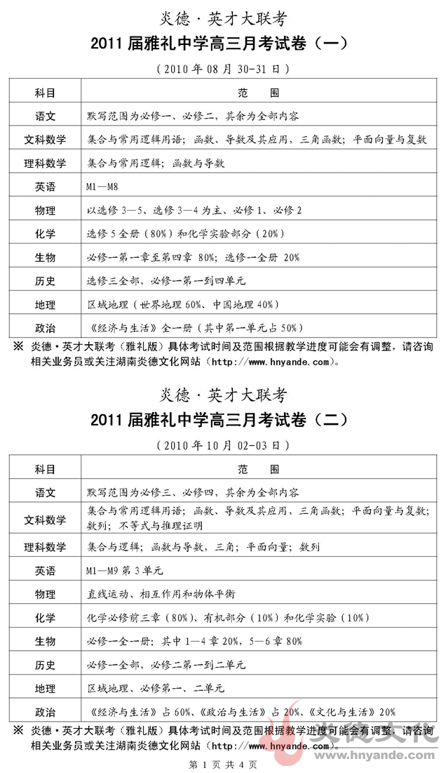 來源:本站原創(chuàng)點擊:2010-08-17 11:48:25收藏本文當前位置:考試范圍 雅禮中學 高三 正文