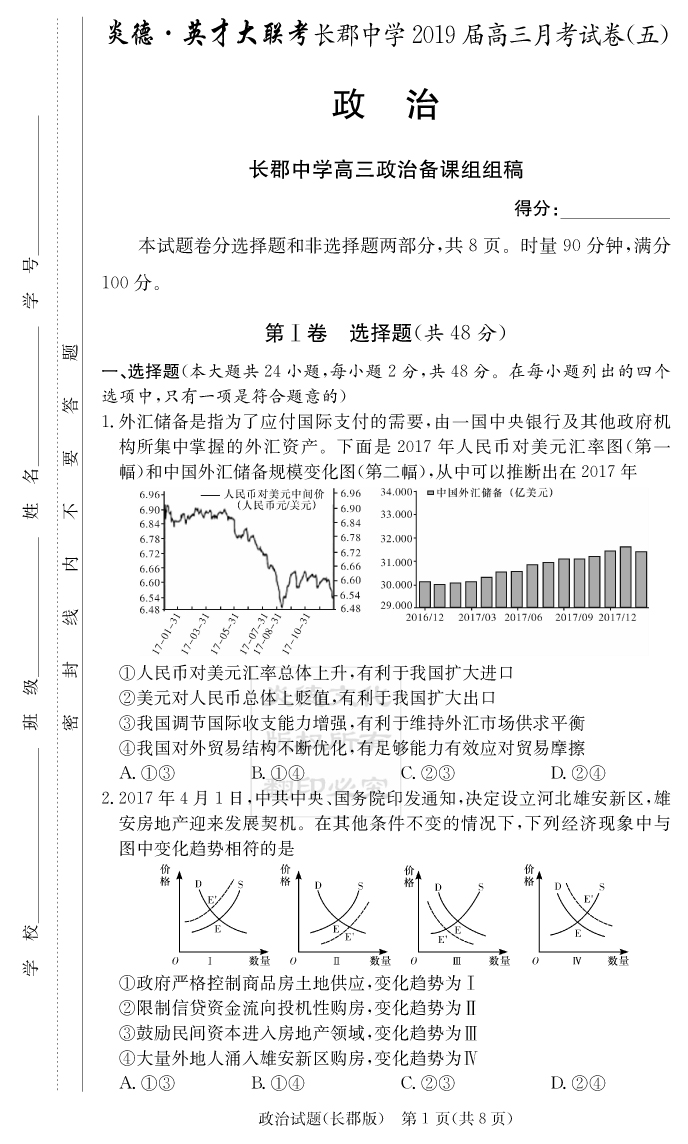 【政治】炎德英才大聯(lián)考2019長郡中學(xué)高三5次月考