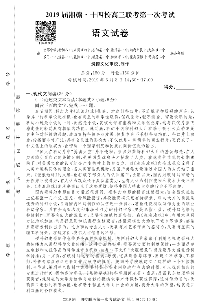 上一篇:【英語(yǔ)】炎德英才大聯(lián)考2019長(zhǎng)郡中學(xué)高三7次月考(十四校聯(lián)考一)