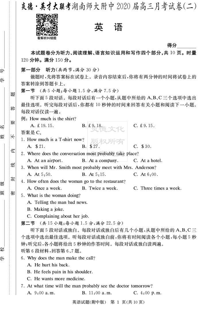 下一篇:【語文】炎德英才大聯(lián)考2020屆師大附中高三2次月考