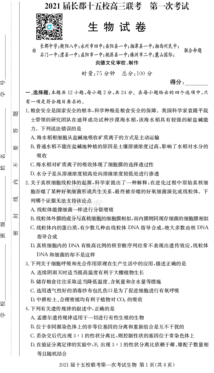 上一篇:【歷史】炎德英才大聯(lián)考2021屆長(zhǎng)郡中學(xué)高三7次月考(十五校聯(lián)考一)
