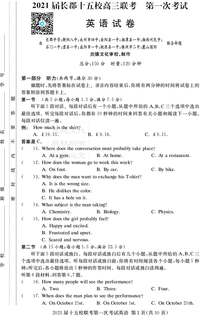 下一篇:【語文】炎德英才大聯考2021屆長郡中學高三7次月考(十五校聯考一)