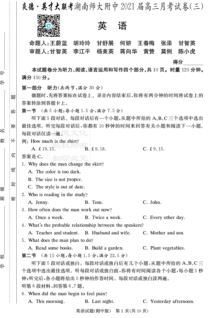 | 資源類別: | 名校月考 | |