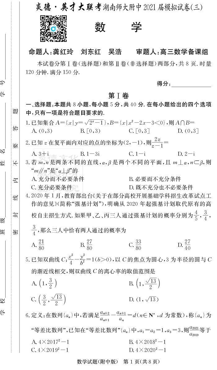 上一篇:【生物】炎德英才大聯考2021屆湖南師大附中高三10次月考(模擬三)