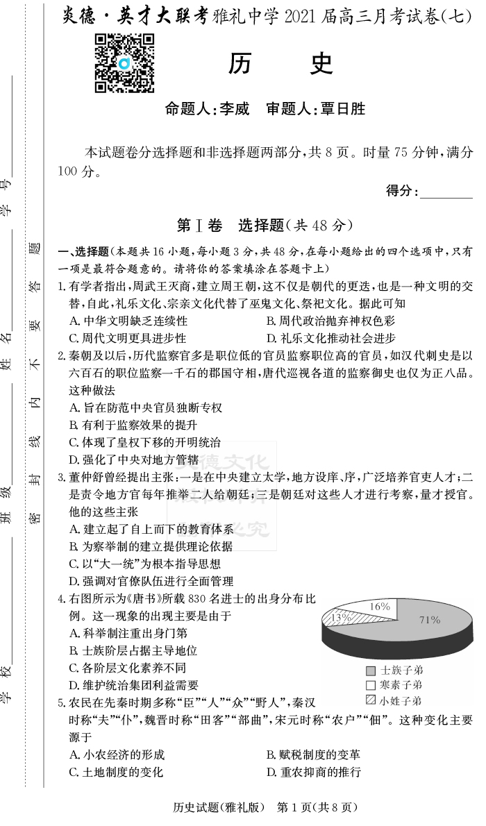 上一篇:【化學】炎德英才大聯考2021屆雅禮中學高三7次月考