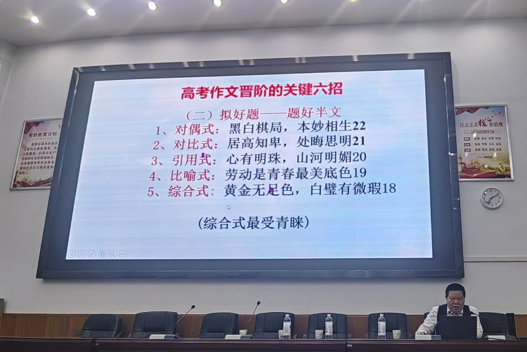 本次講座主題是高考作文提升的關鍵六招及備考策略,圍繞“審好題、擬好題、建好構、用好例、寫深刻、語言優”六個關鍵點展開。馬老師語言風趣幽默、 舉止平易近人,講座內容涉及知識面之廣,提供信息之前沿,傳遞消息之權威,可謂傾囊相助,盡顯其深厚的專業功底和高雅的文學涵養。