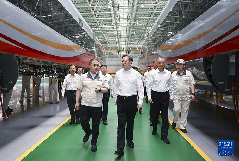 7月7日至9日,中共中央政治局常委、國(guó)務(wù)院副總理丁薛祥在黑龍江、吉林調(diào)研。這是7月8日,丁薛祥在中車長(zhǎng)春軌道客車股份有限公司調(diào)研。(新華社記者 張領(lǐng)/攝)